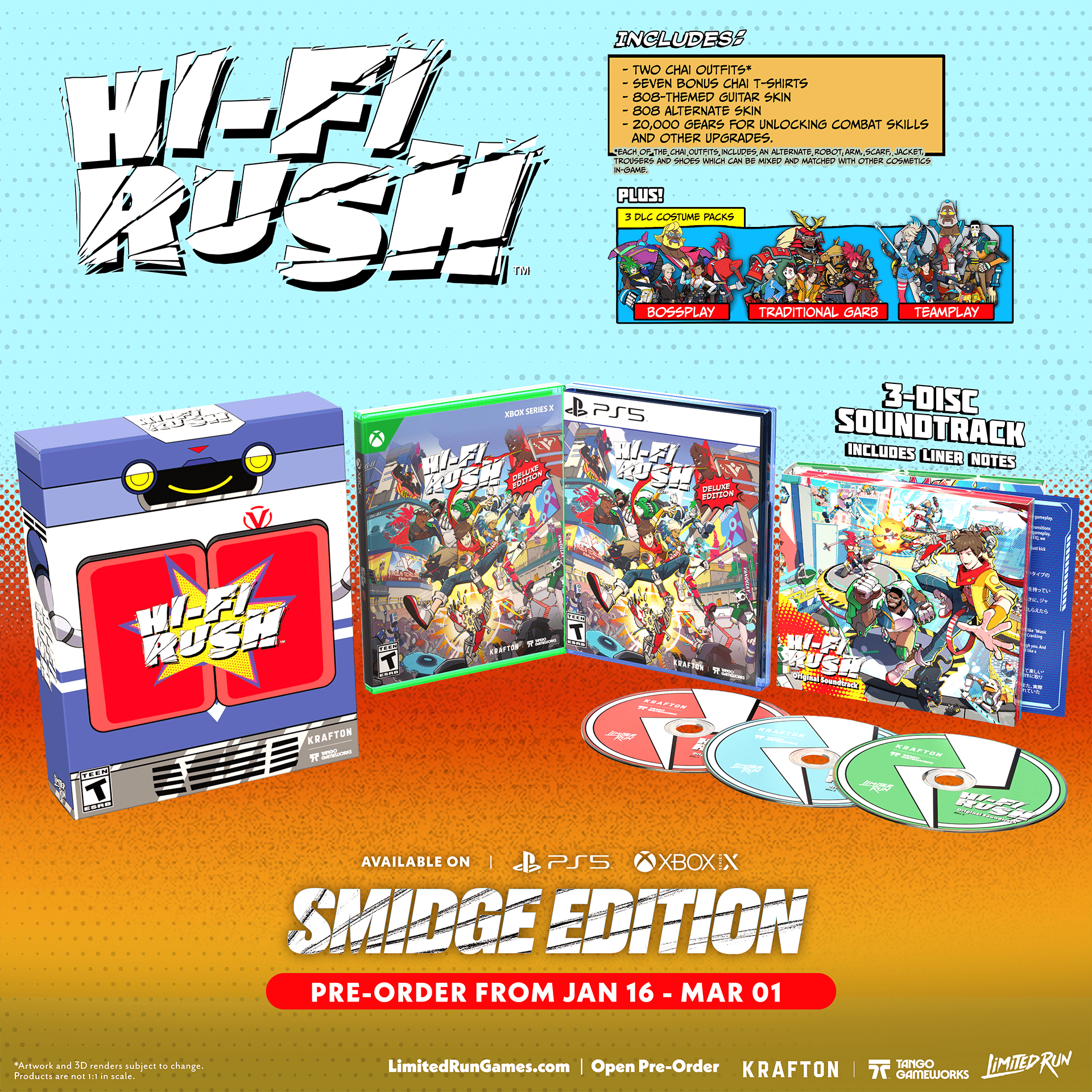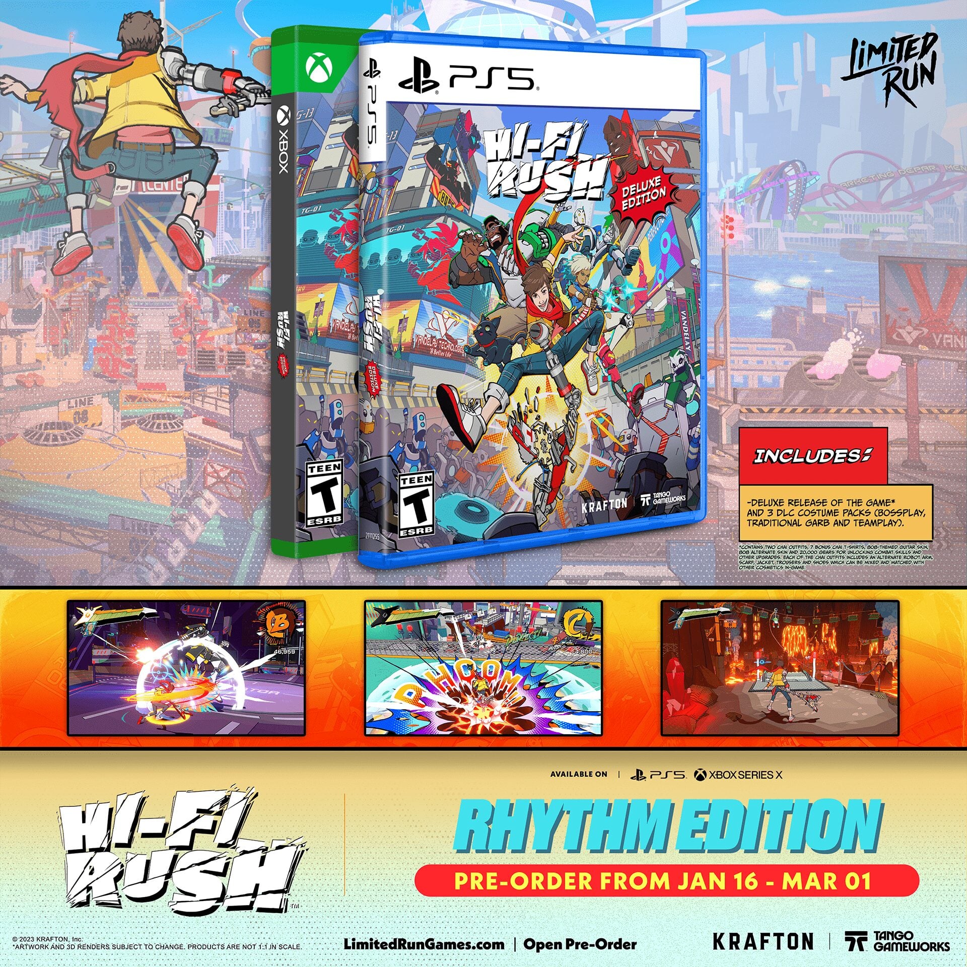 A Limited Run Games confirmou que abrirá, no dia 16 de janeiro, o período de pré-venda das edições físicas de Hi-Fi Rush, título que se destacou no catálogo do Game Pass e foi amplamente elogiado na indústria.