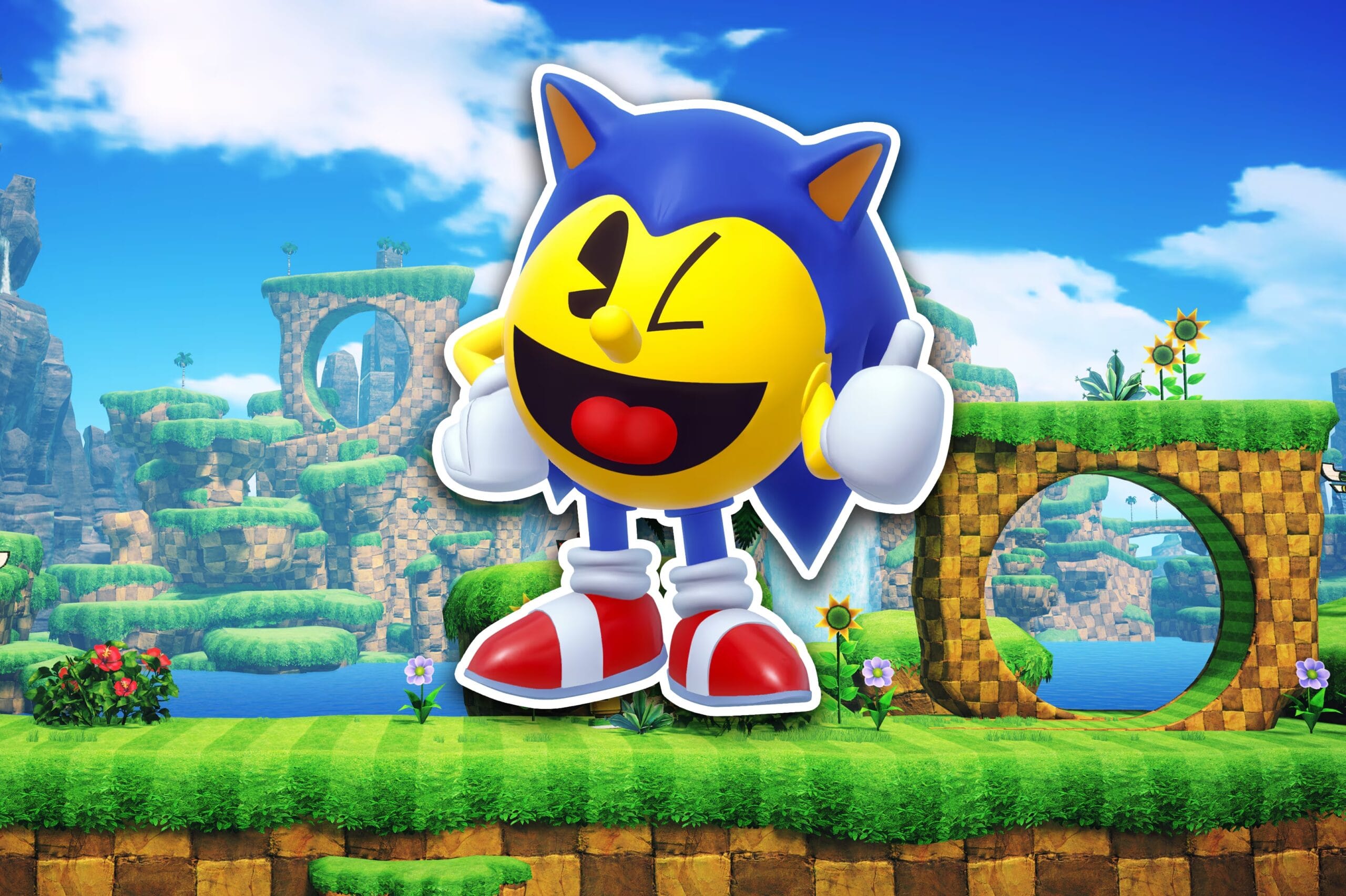 Pois é, Sonic e Pac-Man fizeram um collab meio doida. Como Pac-Man está participando de Sonic Racing: CrossWorlds como corredor (e também com pista própria), já era esperado que o contrário fosse acontecer. Sonic pode não estar literalmente em PAC-MAN WORLD 2 Re-PAC, mas o Pac-Man ganha uma roupinha do Sonic e pode jogar em 3 atos da Green Hill (um deles uma boss battle).