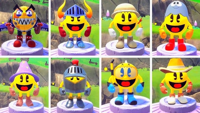 O remake expande áreas originais com caminhos opcionais, colecionáveis como frutas douradas e missões secundárias, como resgatar amigos de Pac-Village, que desbloqueiam upgrades e repovoam o hub central (Além disso você ganha roupinhas iradas também).
